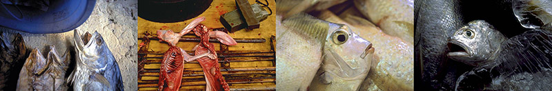 « Marchés d’Asie » - exposition photographique dédiée aux figures des marchés d’Asie Entre 1987 et 1995, au fil de ses voyages en Asie, Philippe Dureuil s’est fait portraitiste sur les marchés, sans cesse à l’affût de ces étranges et familières marchandises qui peuplent les étals des commerçants. Poissons, viandes… amoncellements de chair et d’écailles luisantes, qui gisent dans la glace, se lovent sur des feuilles de bananiers. Volailles exsangues qui s’étirent, pendues à des crochets. Formes animales enchevêtrées, empilages sommaires ou savants. L’objectif a saisi ce que la main (et le couteau…), des vendeurs habiles a su exposer, découper et désosser. L’appareil a isolé la beauté étrange de ces matières à peine encore vivantes, plus que mortes parfois, desséchées aussi. Et le voyageur a fixé ces figures colorées que d’invisibles chalands asiatiques dévisagent quotidiennement. « Comme eux, touchons-les de nos yeux. Nous y sommes invités. » Patrick de Kouroch 44 photographies encadrées en couleur sur papier Cibachrome. Les tirages ont été réalisés par Babeth au laboratoire photographique Dupon à Paris. Les encadrements en aluminium noir mat ont été réalisés par l’atelier Circad à Paris.