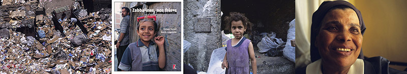 PUBLICATIONS « Zabbalines, nos frères », Sœur Emmanuelle, Philippe Dureuil, Patrick Longueville - éditions de l'Atelier - 2007 Philippe Dureuil a eu le privilège de pouvoir partager le quotidien des chiffonniers du Caire.Ce reportage sur les Zabbalines a donné lieu à une exposition de photographies imprimées sur des bâches grands formats à Paris dans les locaux de l'Agence Idoine en présence de Sœur Sara. Les photographies ont également donné lieu à l’édition d’un livre photo paru aux éditions de l’atelier. Nous partons à la rencontre des Zabbalines dans le quartier du Mokattam situé au sud est du Caire en Égypte. La collecte des déchets de l’une des plus grandes mégapoles du monde est leur métier. Voici plus de trente ans, à l’âge de 62 ans, sœur Emmanuelle venait s’installer chez eux au milieu des immondices, des rats, des maladies, des odeurs pestilentielles et de la mort qui emporte les enfants. Trois décennies plus tard, les Zabbalines sont toujours là, debout et fiers. Sœur Emmanuelle aidée de sœur Sara qui lui a succédé, leurs a rendu leur dignité. Des écoles sont nées, des maisons ont surgi à la place des taudis, la mortalité des enfants a reculé.